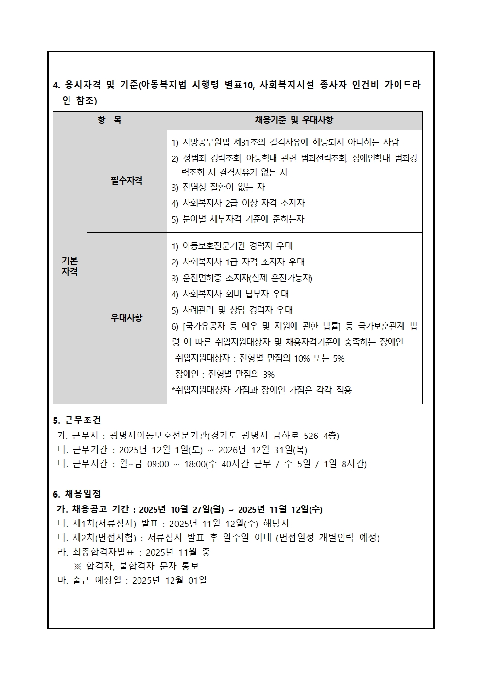 [채용] 광명시아동보호전문기관 2025년 제5차 직원채용(기간제 계약직) 최종 합격자 공고