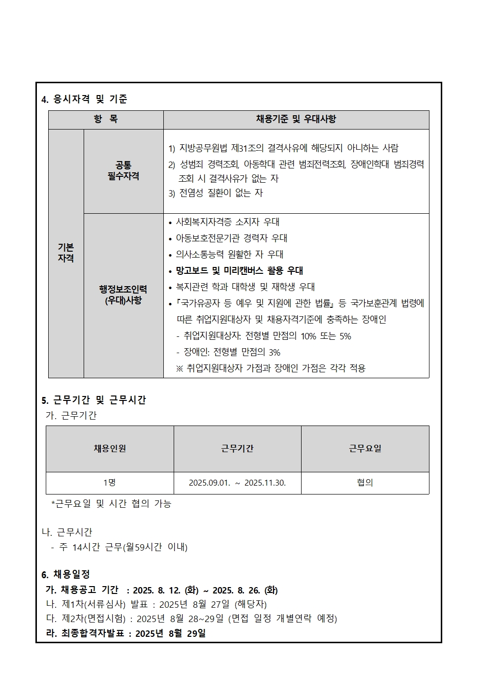 [채용] 2025년 ‘방문 똑똑! 마음 톡톡! 방문형 가정회복사업’ 제4차 행정보조인력(파트타임) 채용공고