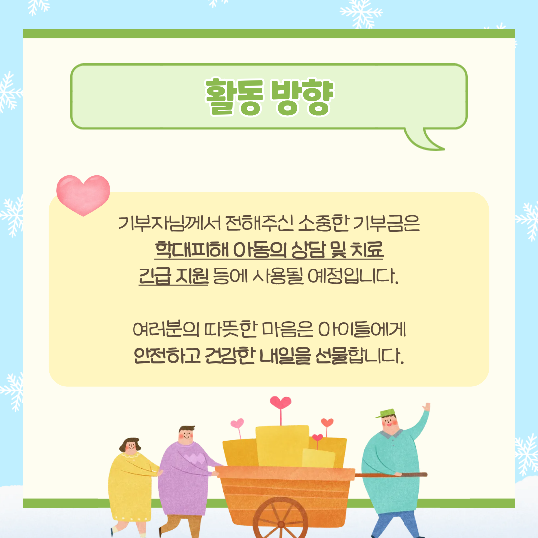 아이들을 위해 사용하고자 뜻을 모아주셨습니다.