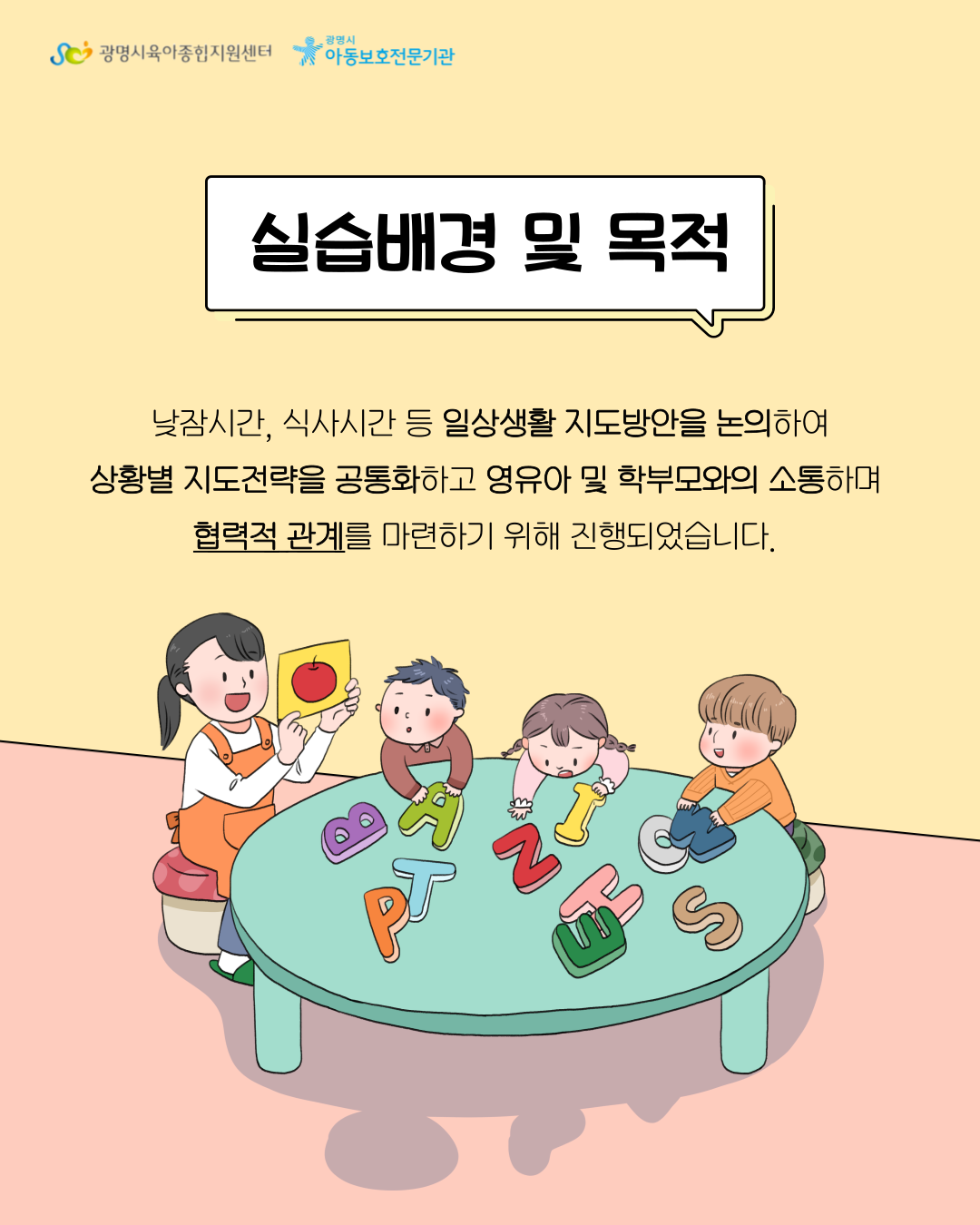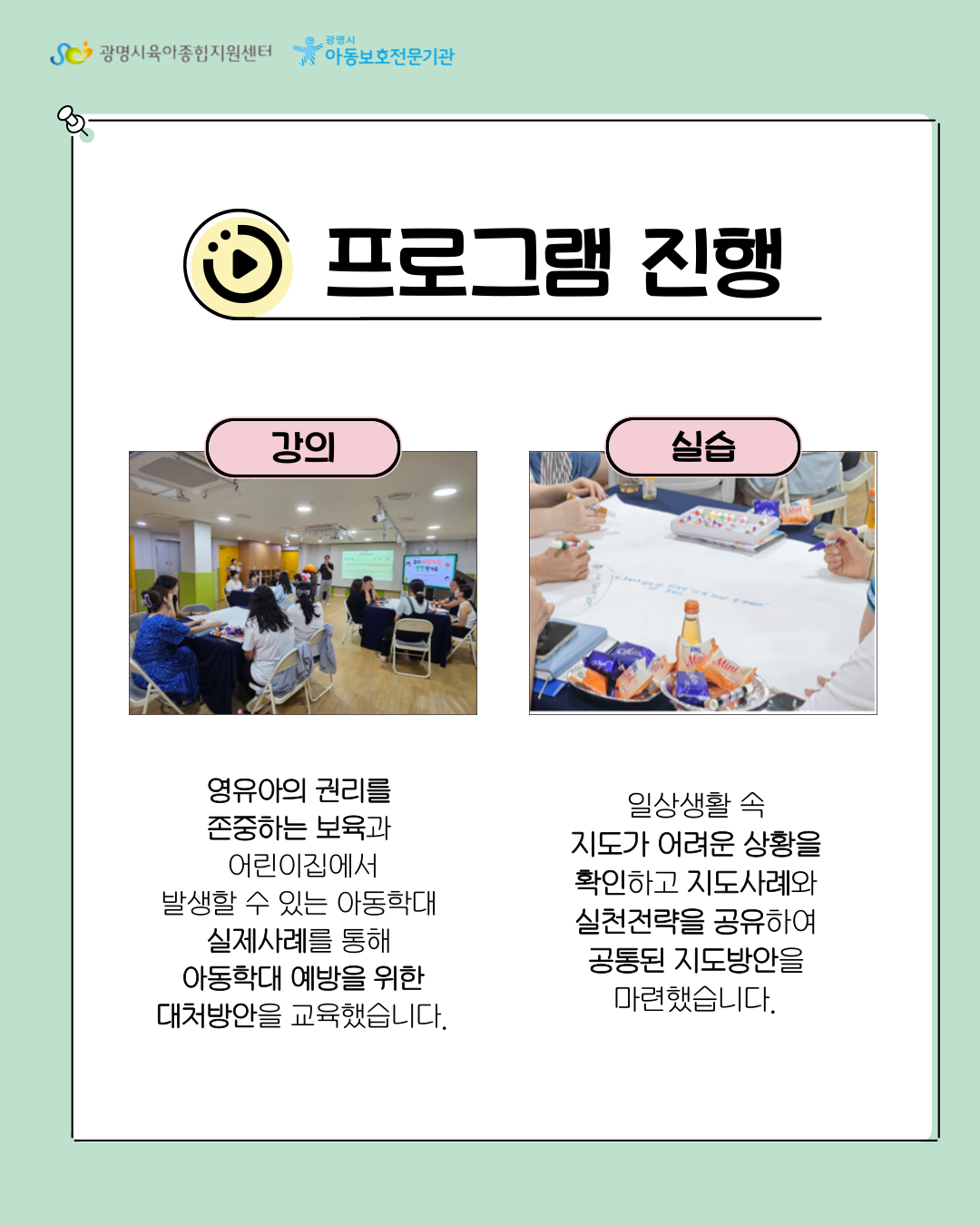 #광명시아동보호전문기관 #광명시육아종합지원센터 #어린이집 #보육교직원 #사례장학지도 #실습 #아동권리존중 #아동학대예방 #아이들의건강한성장