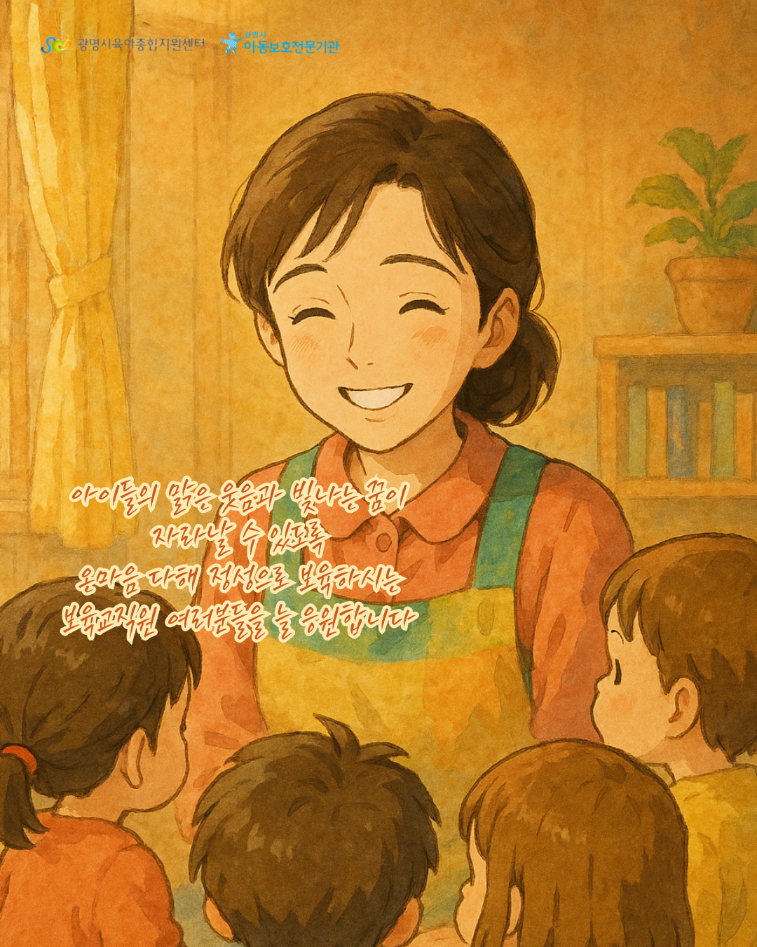 보육교직원분들의 빛나는 노력과 열정으로 아이들의 오늘과 내일을 더욱 밝게 만듭니다. 늘 정성과 사랑으로 보육해주시는 보육교직원 여러분께 진심으로 감사와 응원의 마음을 전합니다 🙌