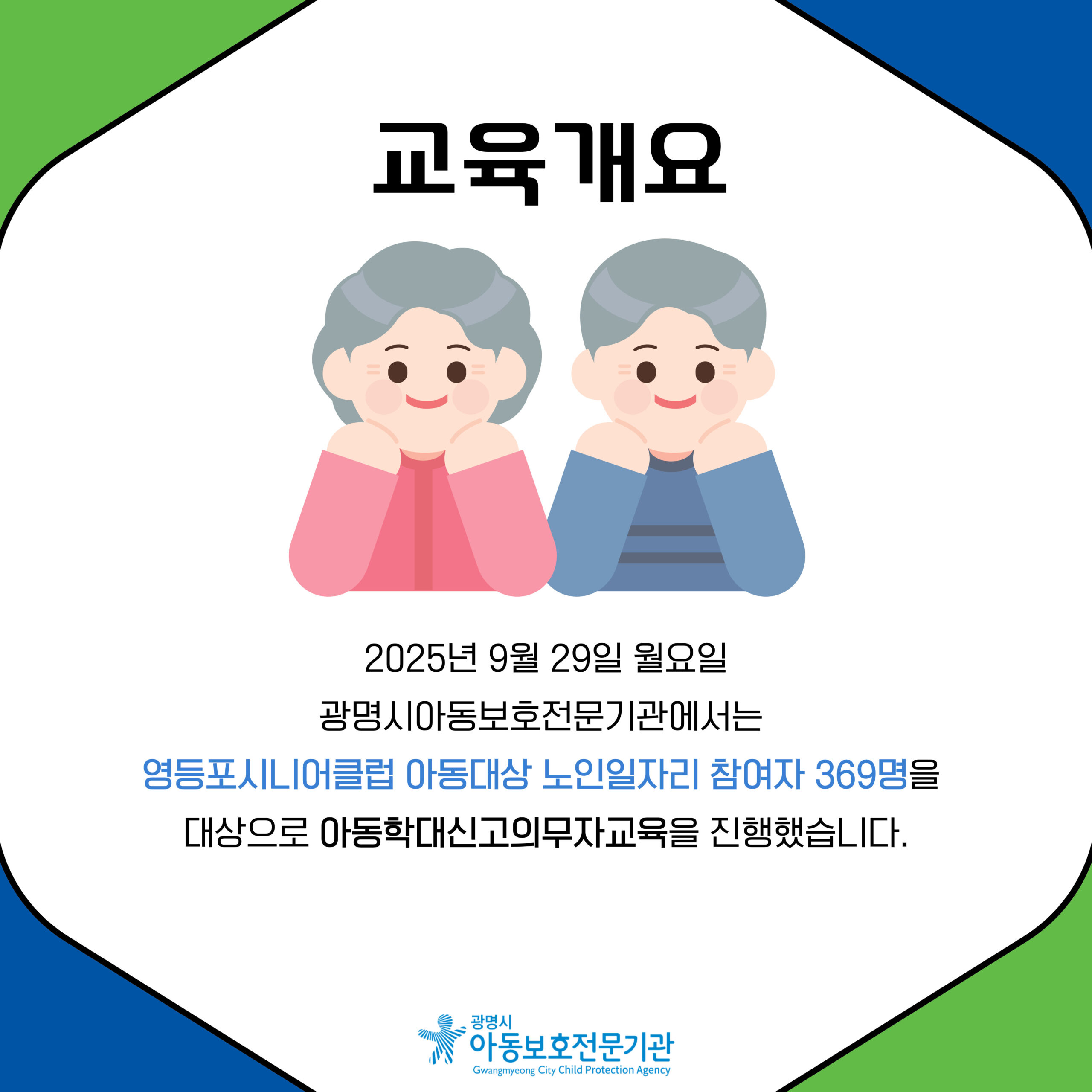 #광명시 #광명시아동#보호전문기관 #영등포 #영등포시니어클럽 #아동보호전문기관 #시니어클럽 #노인일자리 #아동학대예방교육 #아동학대신고의무자교육 #아동학대 #아동학대예방 #아동보호
