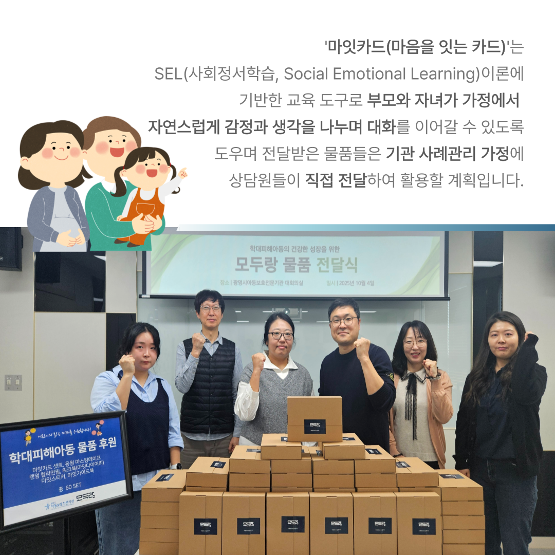 이번에 전달된 '마잇카드세트'는 부모와 아이가 감정과 생각을 나누며 서로를 이해할 수 있도록 돕는 따뜻한 교육 도구입니다.